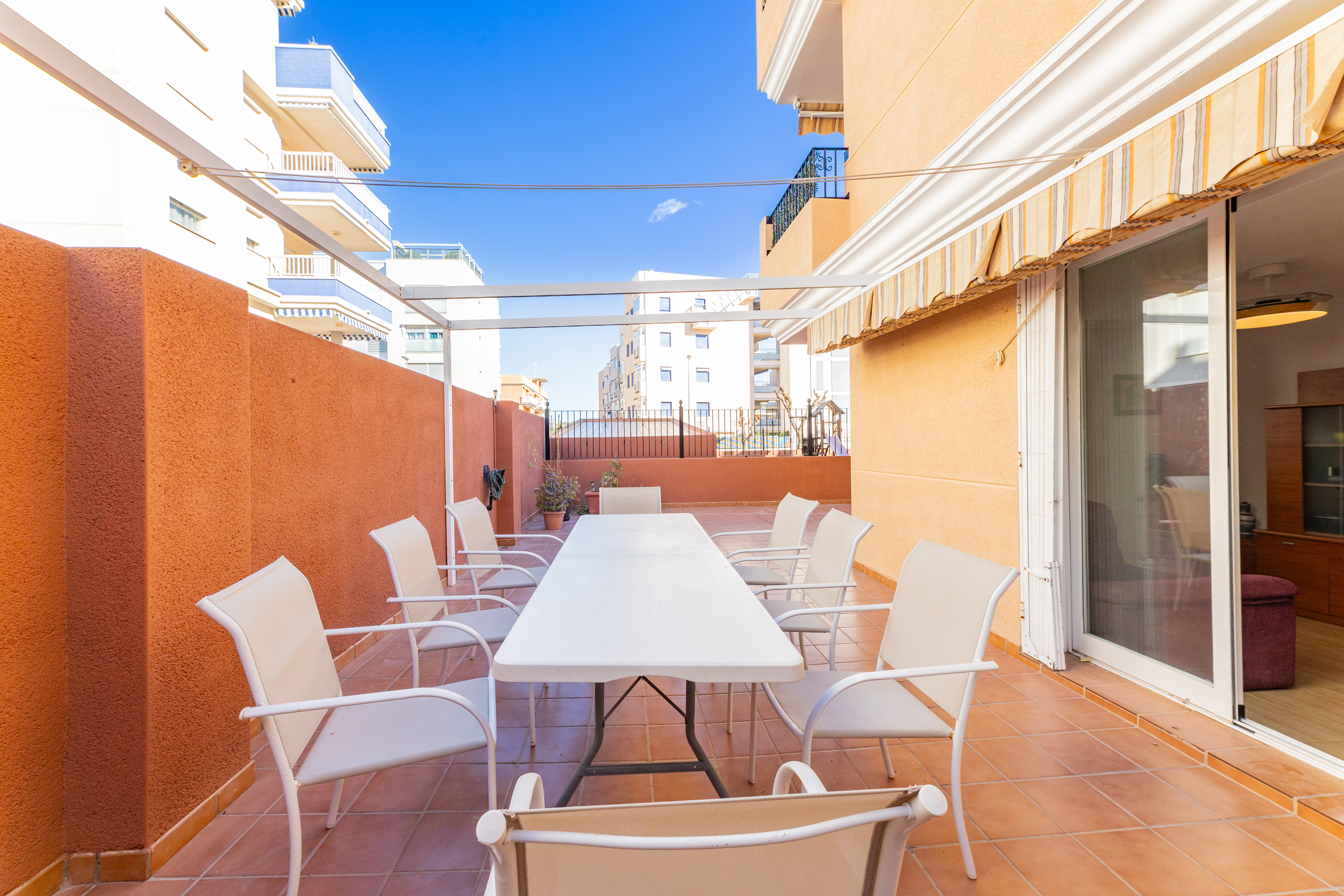 Sensacional apartamento en la Playa de Canet de Berenguer MagnÃfico apartamento esquinero de 62 m² útiles en un residencial privado a tan solo 100 metros de la playa y muy próximo al Puerto Deportivo Siles. Con orientación este, la vivienda disfruta de luz natural durante gran parte del dÃa. Se distribuye en: 2 habitaciones con armarios empotrados y ventiladores de techo. Amplio salón-comedor con salida a una espectacular terraza de 120 m² que rodea el apartamento. Cocina americana con abundante espacio de almacenaje. 2 baños completos con plato de ducha. La enorme terraza, perfecta para disfrutar al aire libre, cuenta además con un paellero instalado. El precio incluye una amplia plaza de garaje y un trastero de 4 m². Ubicación excepcional: Canet de Berenguer, a orillas del Mediterráneo y junto a la desembocadura del rÃo Palancia, ofrece un entorno natural único, con playas de arena fina, zonas llanas ideales para pasear y un clima mediterráneo con predominio de vientos de levante y noreste. VisÃtelo sin compromiso.