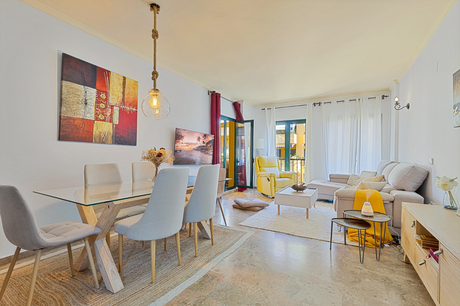 Elegancia mediterránea y amplitud en Nueva Alcántara, Marbella Hay propiedades que se definen por su atmósfera, y este piso en la prestigiosa urbanización Los Almendros es una de ellas. Situado en una ubicación privilegiada, a un corto paseo del mar y a escasos minutos del icónico Puerto Banús, representa el equilibrio perfecto entre la serenidad de un entorno privado y la vibrante vida de la Costa del Sol. Un diseño pensado para el exterior Al cruzar el umbral, la sensación es de libertad absoluta. La vivienda destaca por una zona de día de dimensiones generosas que se abre, a través de grandes ventanales, a una impresionante terraza privada. Es un espacio fluido donde los límites entre el interior y el exterior se difuminan, permitiendo disfrutar de cenas al aire libre con los cuidados jardines comunitarios y el azul del Mediterráneo como telón de fondo. Confort y privacidad La zona de descanso ha sido proyectada para el máximo bienestar. Cuenta con una suite principal y dos dormitorios adicionales, todos con la particularidad de tener acceso directo a la terraza, lo que inunda cada estancia de luz natural y frescura. La propiedad se completa con una cocina totalmente equipada con área de lavandería independiente y un práctico aseo de cortesía para invitados. Un oasis de servicios Vivir en esta comunidad es acceder a un estándar de calidad superior en un entorno diseñado para el disfrute de todos: Cuatro piscinas exclusivas: La urbanización cuenta con dos piscinas para adultos y dos piscinas infantiles, rodeadas de paisajes subtropicales impecables. Ubicación estratégica: Conexión directa a pie con el Bulevar de San Pedro, prestigiosos colegios internacionales, alta gastronomía y exclusivos clubes de playa. Comodidad absoluta: La propiedad incluye plaza de garaje y trastero privado. Esta es una oportunidad excepcional para quienes buscan una residencia sofisticada o una propiedad vacacional de alto nivel en una de las zonas más demandadas y consolidadas de Marbella.