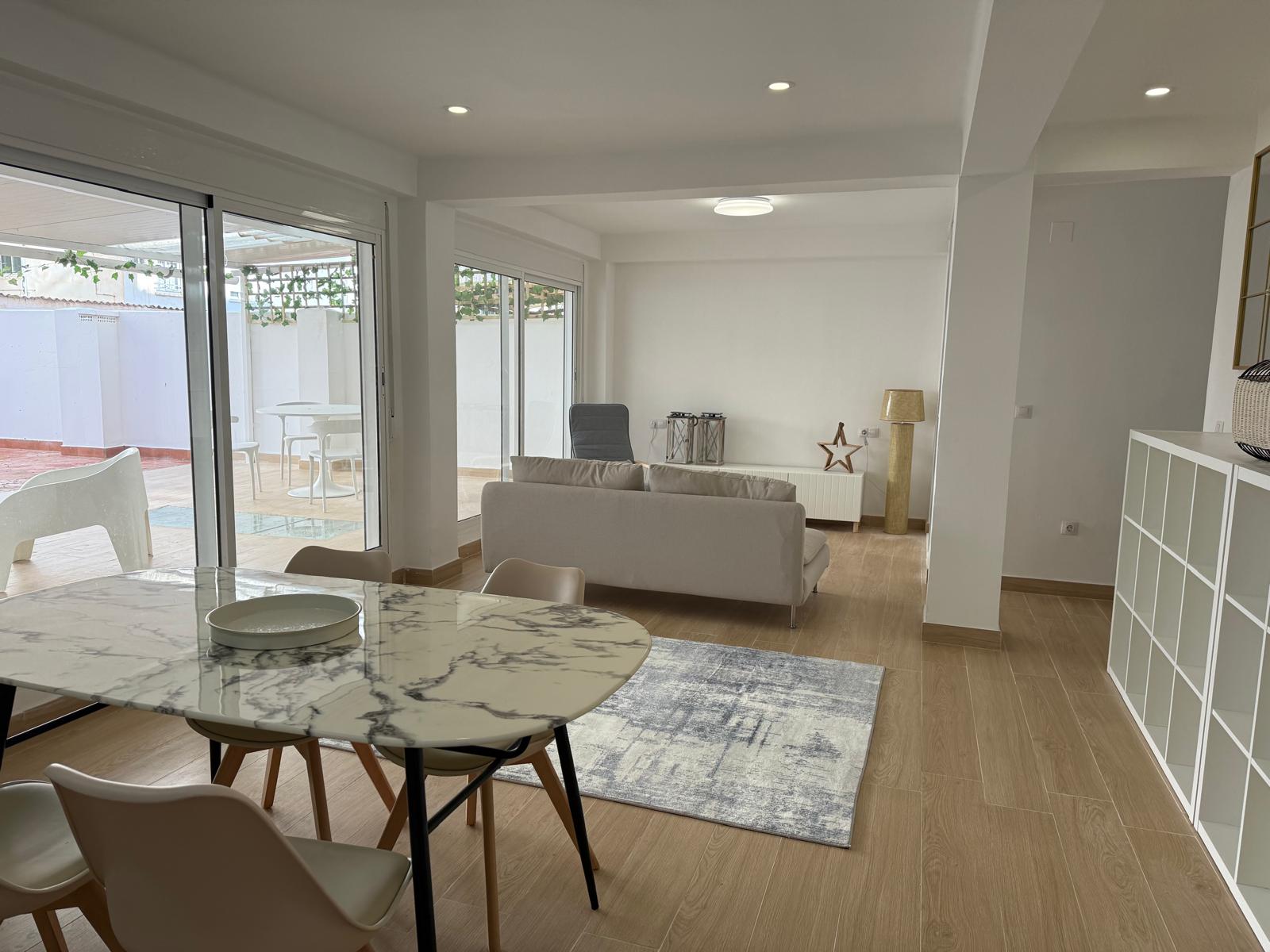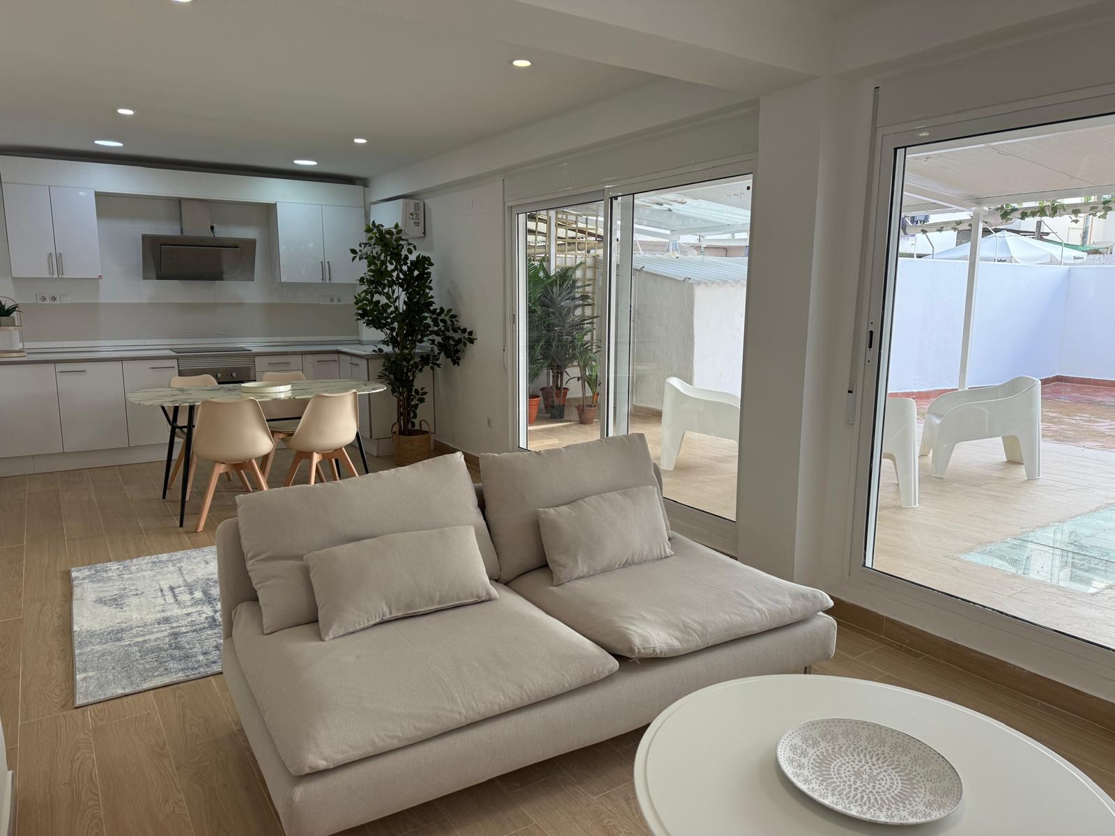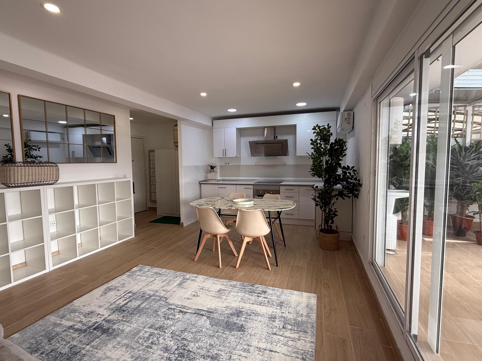 Piso reformado con gran terraza de 80 m², de los cuales casi 40 m² están cubiertos. Muy luminoso, con grandes ventanales y salida directa a la terraza. La vivienda tiene 65 m², con reforma reciente y diseño moderno y funcional. Dispone de 2 dormitorios, 1 baño y salón con cocina integrada, aprovechando al máximo el espacio. Cuenta con una terraza cubierta adicional de unos 8 m², ideal como apoyo de almacenamiento, y trastero de aproximadamente 4 m². Dispone de 3 armarios, dos de ellos empotrados. Equipada con aire acondicionado y bomba de calor. Ubicada en una zona consolidada, con grandes supermercados, numerosos comercios y buenas comunicaciones. Ideal para quienes buscan una vivienda moderna con un gran espacio exterior.